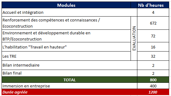 - Il est préférable d'avoir suivi la formation "Ouvrier en écoconstruction (préparation à la professionnalisation)"